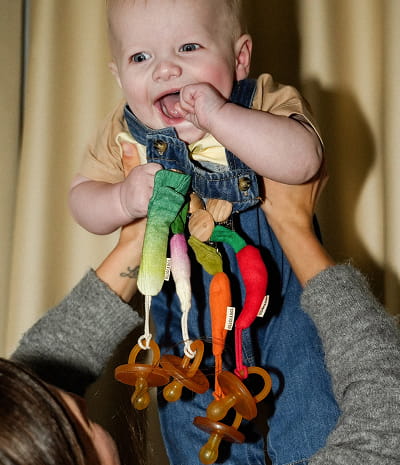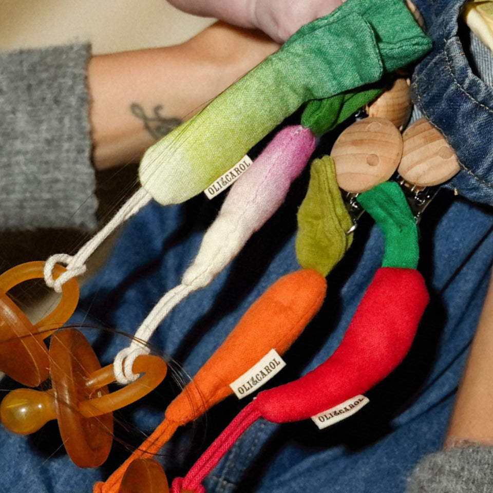 Hang it, grab it, love it! playful, colorful & sustainable . Keep pacifiers and mini teethers close while adding a touch of fun to every outfit.
