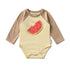 Long-sleeved baby body made from 100% cotton, featuring a round neckline and front snap-button closure for easy dressing — inspired by a classic baseball design.