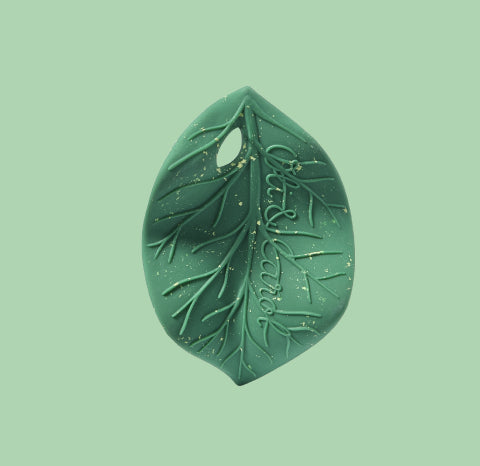 The Chlorophyll Leaf Teether is a chewable baby teether made from natural rubber with chlorophyll pigment designed with an ergonomic shape for babies palette, soothing teething gums and approved by dentists.