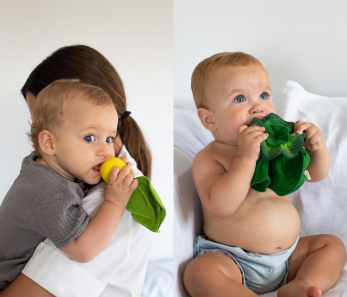 Our iconic fruits&veggies are now transformed into a mini doudou teether with oeko tex certified cotton.