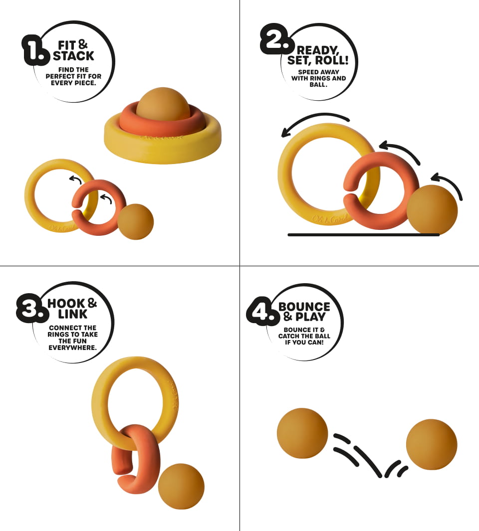Designed for slightly older babies who are exploring and discovering the world around them, the toy consists of three pieces that can be combined in four different ways, encouraging creativity, curiosity, and problem-solving skills. This versatile design supports exploratory play, hand-eye coordination & cognitive development.