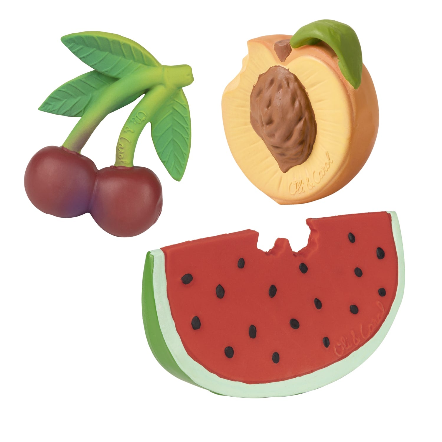 Nuestros juguetes son biodegradables y se elaboran artesanalmente uno a uno con caucho de los árboles de Hevea, y están pintados con pigmentos naturales. ¡Incluso nuestros sonajeros están rellenos de semillas de cereza recicladas!