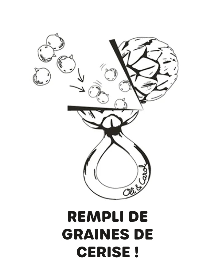 Les nouveaux hochets Oli&Carol sont les plus écologiques du marché, car ils sont remplis de graines de cerise recyclées et stérilisées qui, autrement, n’auraient pas été utilisées.