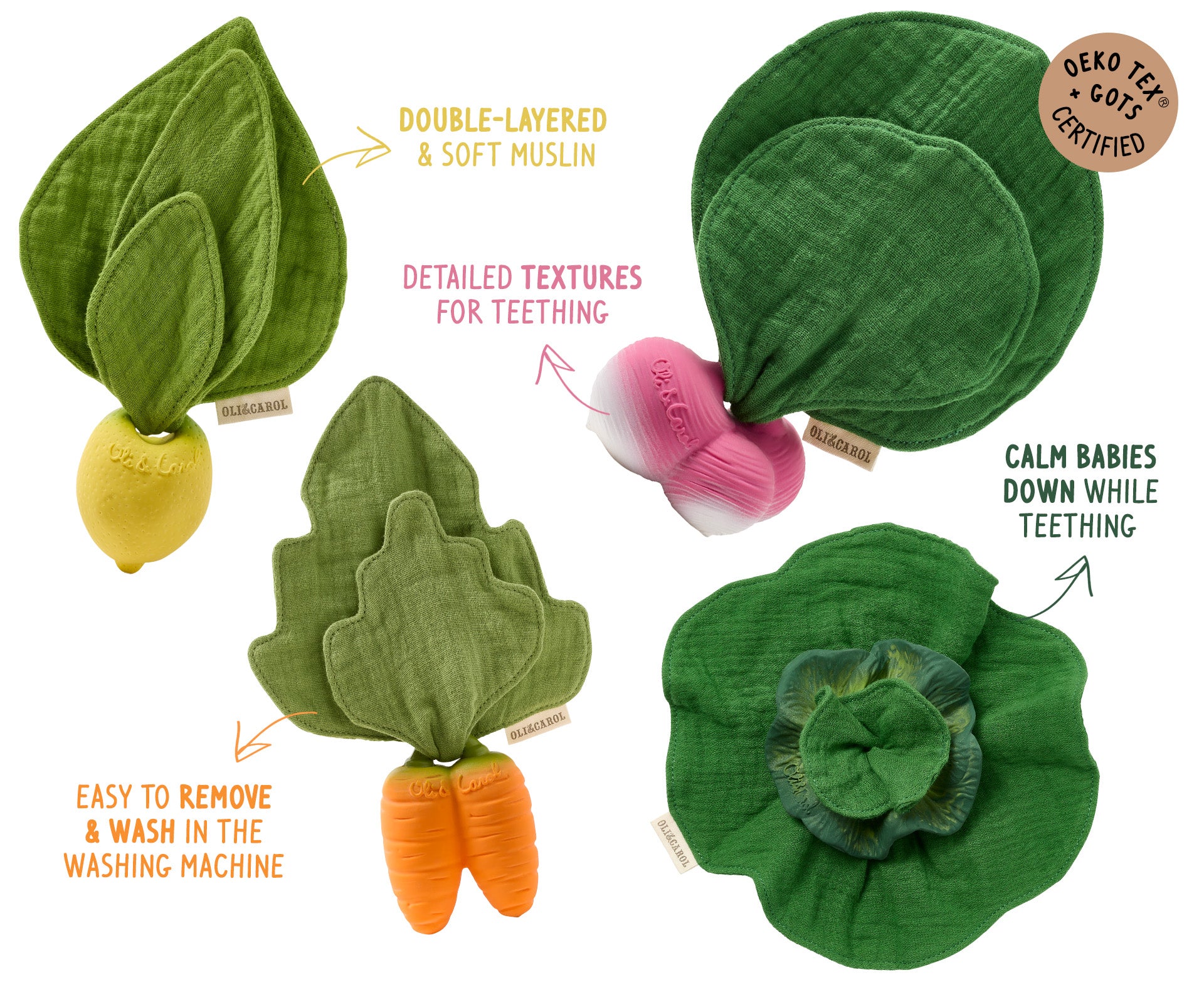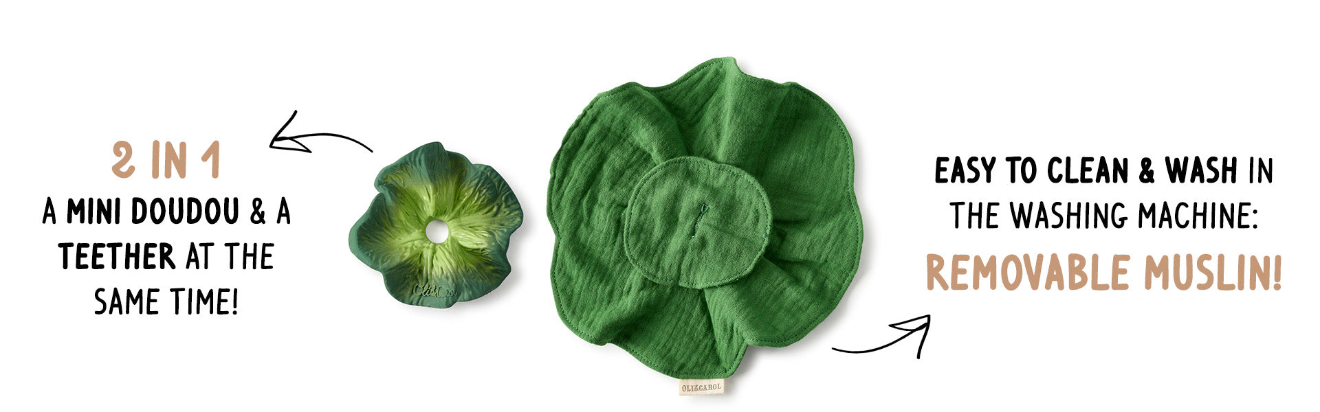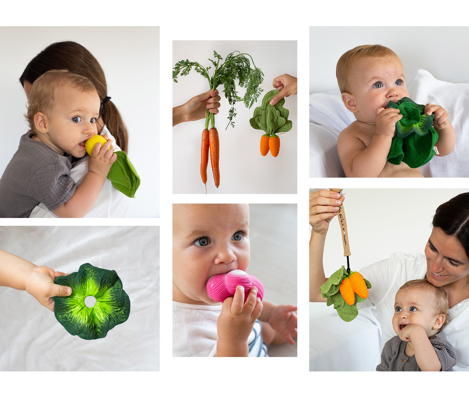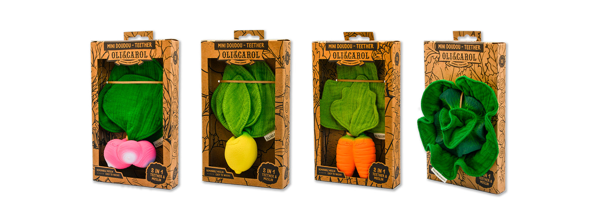The Oli&Carol iconic Fruits&Veggies are now transformed into Mini Doudou-Teethers to make little ones feel comfy anywhere they go!