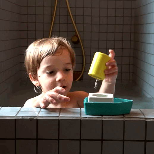 Le Bateau Recyclé est un jouet éducatif en caoutchouc naturel destiné au jeu sensoriel et au moment du bain, aussi bien pour les tout-petits que pour les plus grands qui commencent à attraper des choses et à jouer. Il comprend 3 pièces en 1 et est fabriqué de manière durable en recyclant nos propres restes, tout en donnant une seconde vie aux déchets.