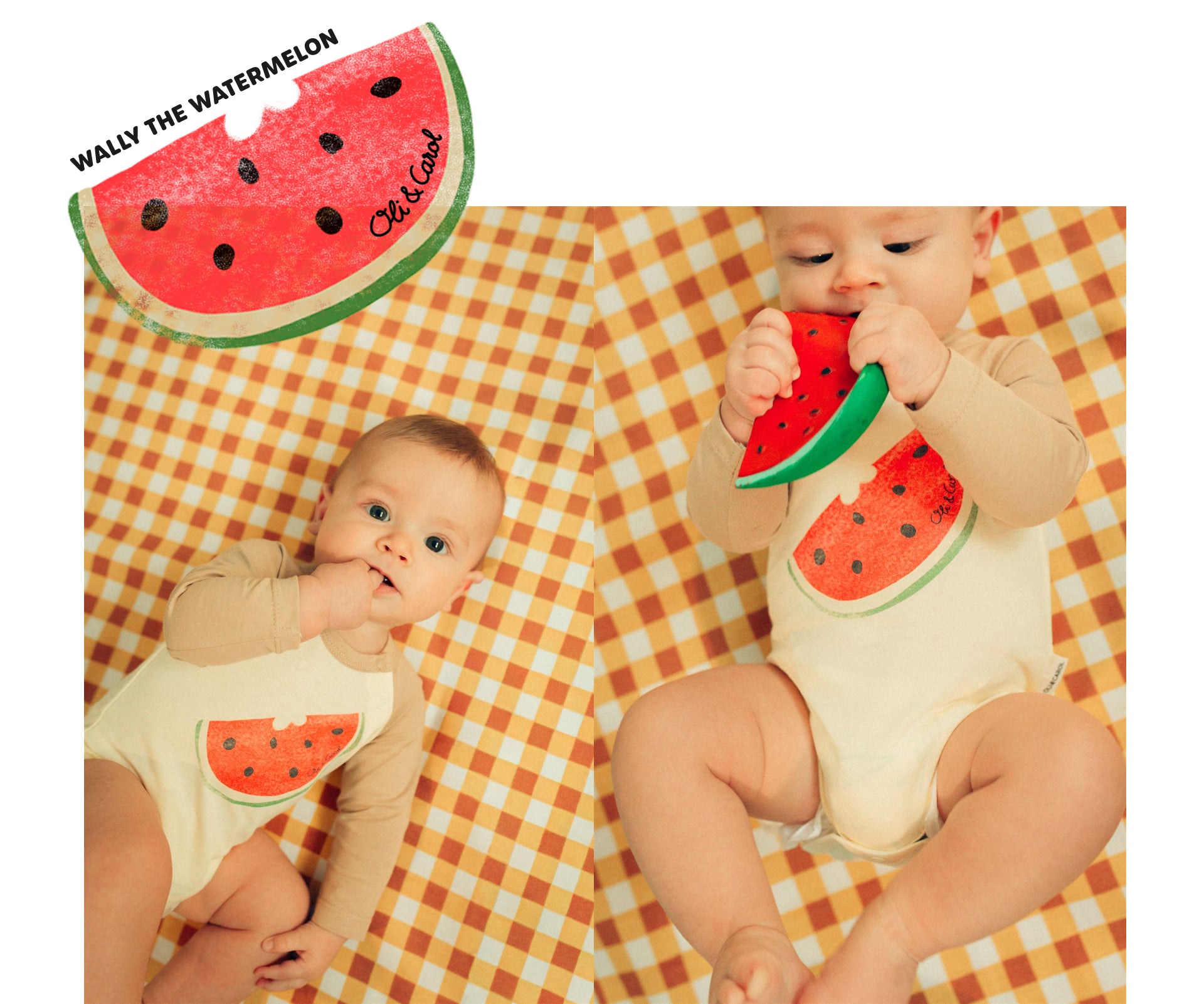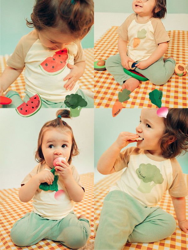 La nostra nuova collezione per neonati e bimbi piccoli celebra i colori, il divertimento e la freschezza della nostra frutta e verdura più iconica — realizzata con amore e 100% cotone.