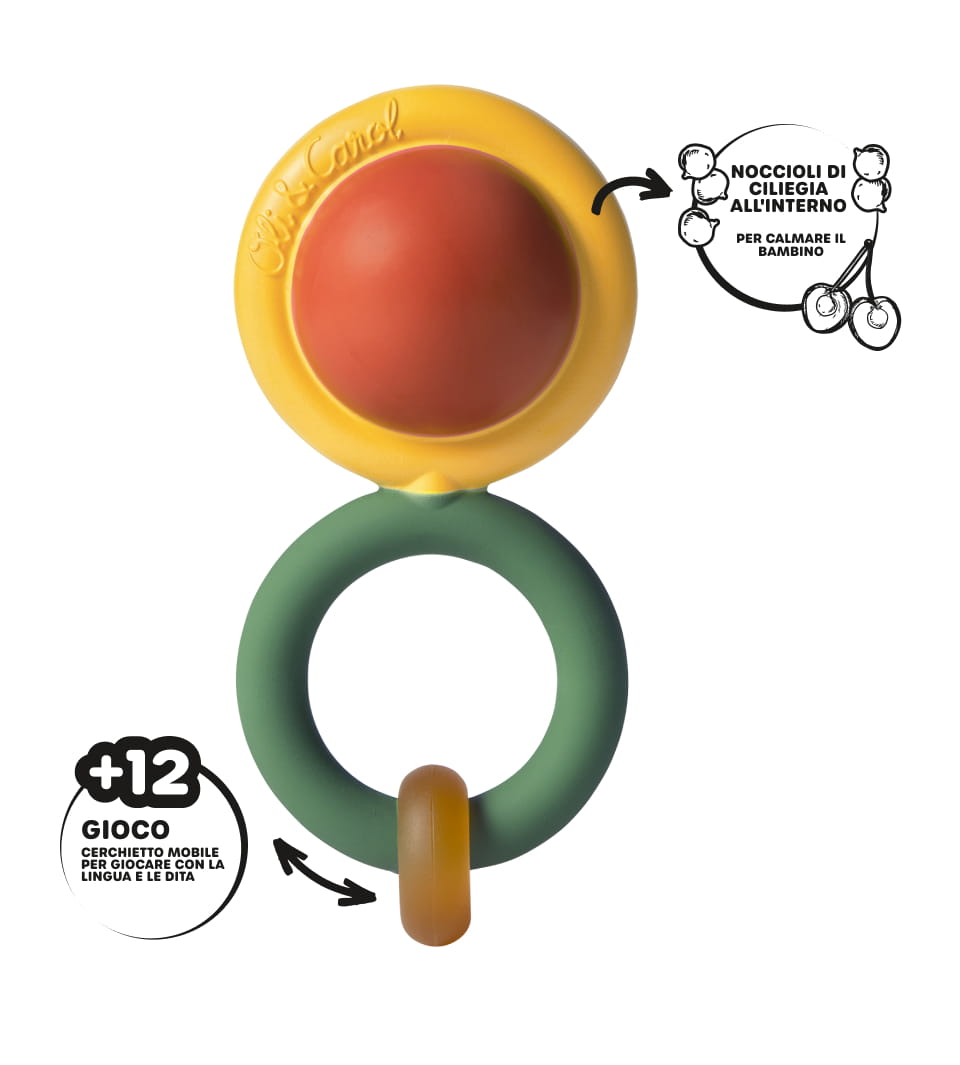 Presenta inoltre un anello in pura gomma naturale, facile da afferrare per le manine e perfetto per dare sollievo alle gengive durante la dentizione.